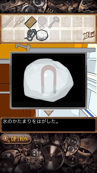 扉を開けて、「アイスピック」を使って「氷のかたまり」を入手。