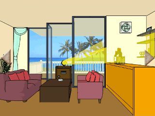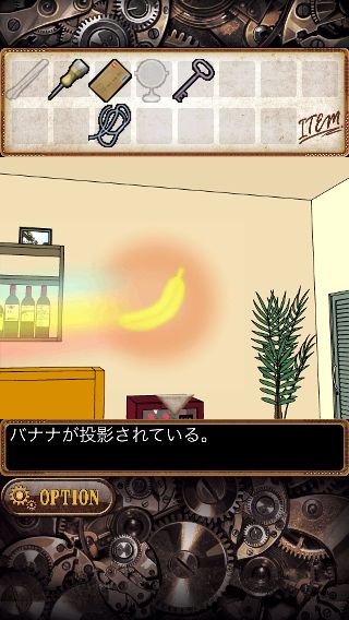 反対側に移動して、壁に投影された『バナナ』を確認。