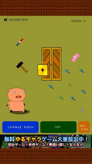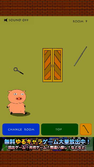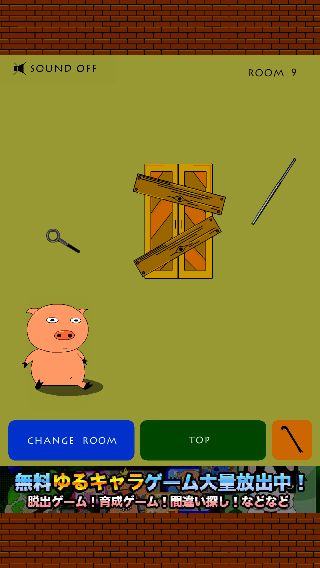 右の黄色いモノを「ハンマー」で叩いて、「カギ」を入手。