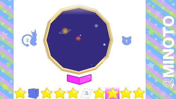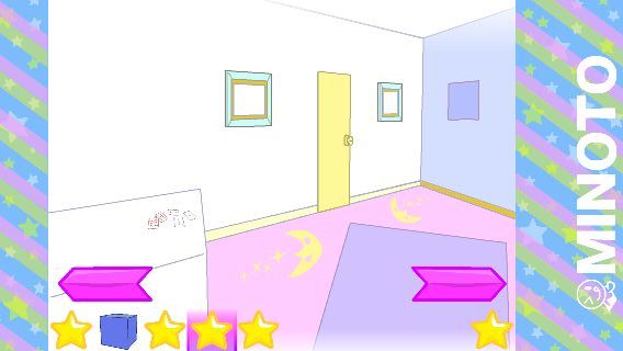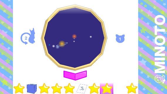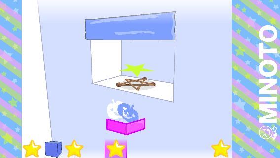 床の月の絵をヒントに、画面を2本指でピンチイン操作で横方向を縮める。