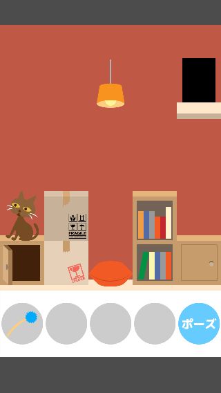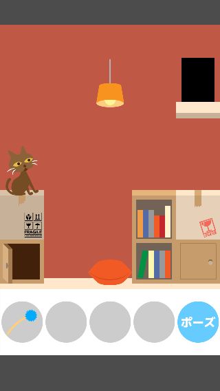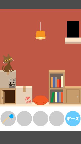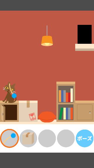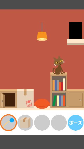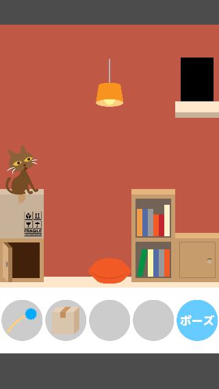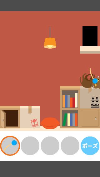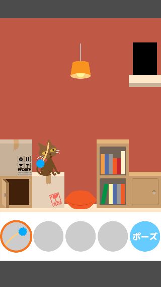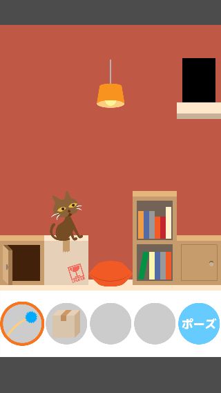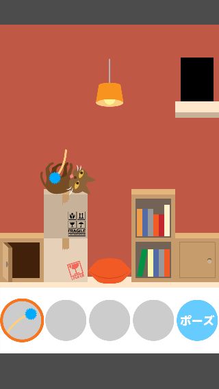 「ねこじゃらし」で右に誘導して、左下の「ダンボール」を取る。