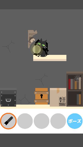 「ダンボール」を元の場所において、「懐中電灯」で右上に誘導する。