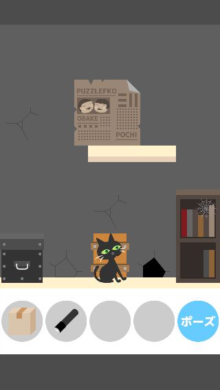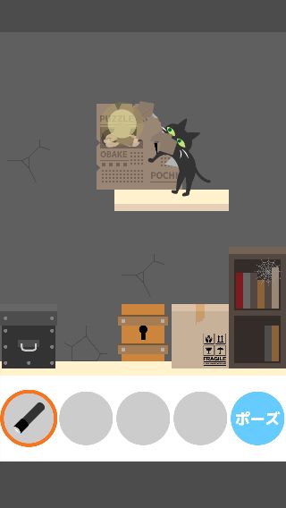 ダンボールがあった場所の壁をタップで壊すと、ネズミが現れネコが降りる。