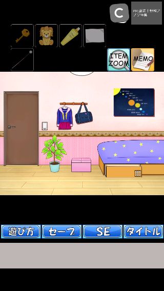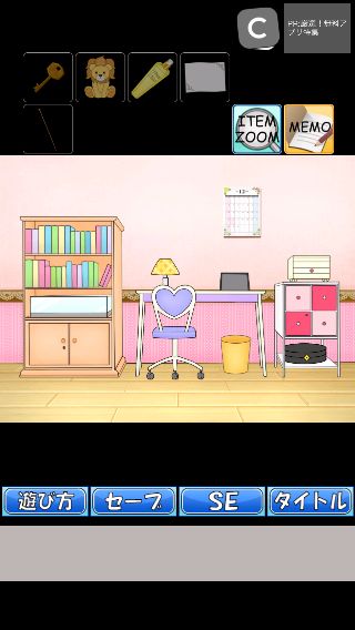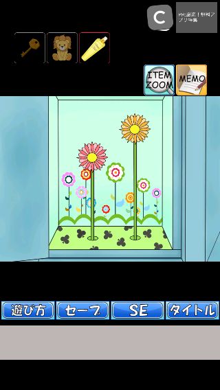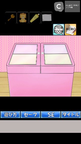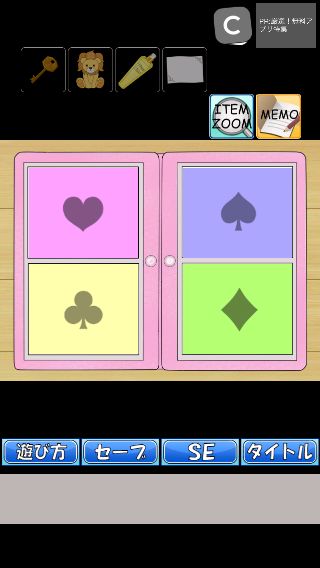 青い棚の扉を開けて、下のクローバーの模様の色を確認。