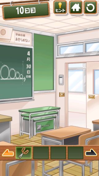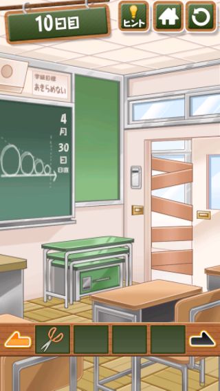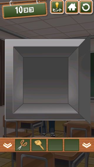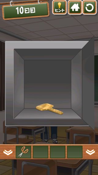扉に「カギ」を使って開けて、「ハサミ」を使う。