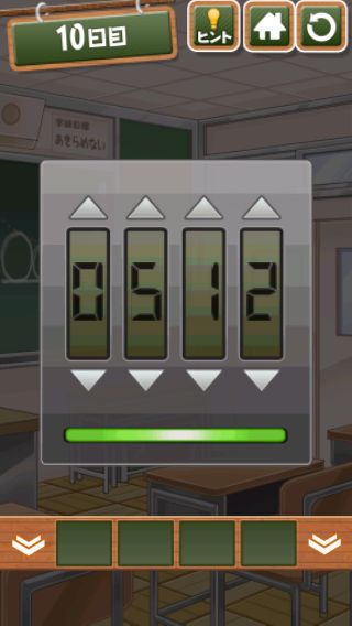 右に移動して、黒板に書かれた順で器の数字を並びかえると、『0512』になる。