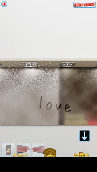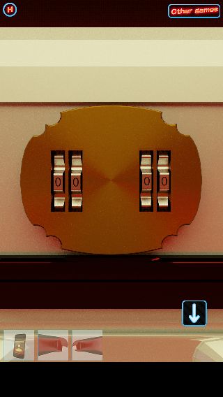 脱出ゲーム「Rolling Bed」 無料 0 評価する 送信する 攻略その3 上のアタッシュケースを拡大。 『左81、右33』に合わせる。 中から「指輪」を入手。 隣の部屋に移動して、洗面台を拡大。 「指輪」で栓をして、お湯を入れる。 鏡に浮かび上がった『love』を確認して、右へ。 パズルを回転させて、反転した文字で『LOVE』の形にする。 中から「ドライバー」を入手。 前の部屋に戻り、左に移動してソファーを拡大。 中央を拡大して、『右上→左下→左上→右下』の順で「ドライバー」でネジを外す。 攻略その1 攻略その2 攻略その3 攻略その4 攻略その5