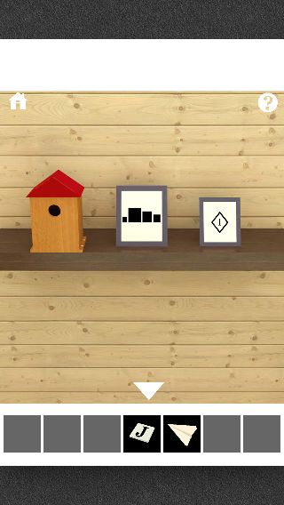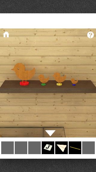 右上の棚を拡大して、左にあった額の線の長さの順で並びかえると『青赤黄緑』となる。