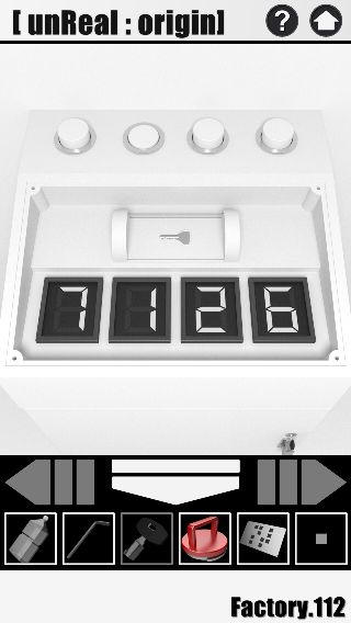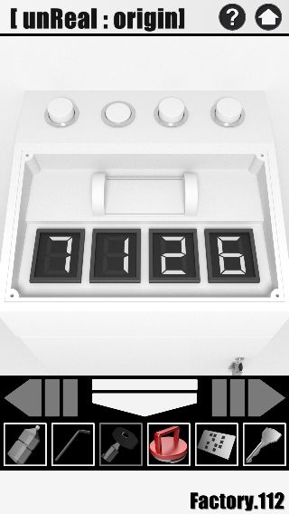 脱出ゲーム unReal:origin 無料 4.3 評価する 送信する Factory.112 攻略その5 左に移動して、左の排水口のボタンを『7回』押す。 反対側に移動して、装置の上へ。 押した回数が正しければ、デジタルが『7126』になっている。 「カギ」を入手して、反対側に移動。 扉を拡大して、「カギ」を使って脱出。 攻略その1 攻略その2 攻略その3 攻略その4 攻略その5