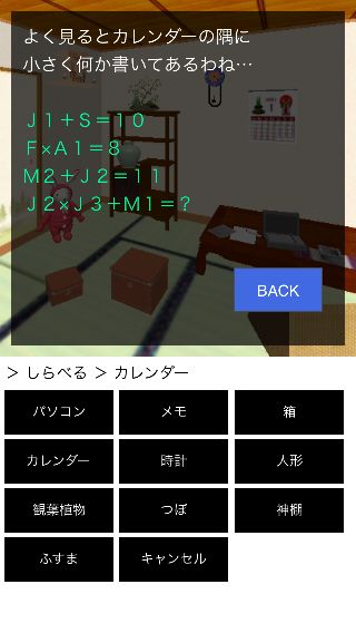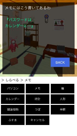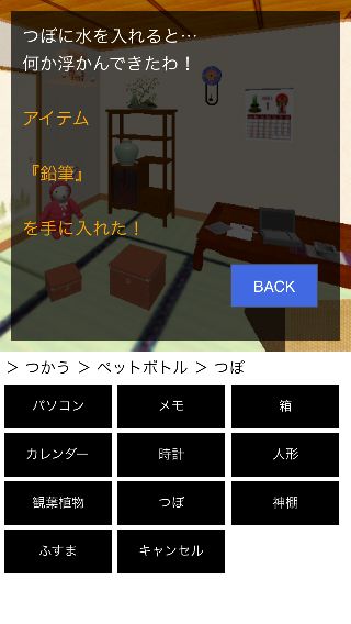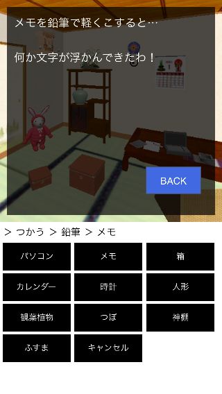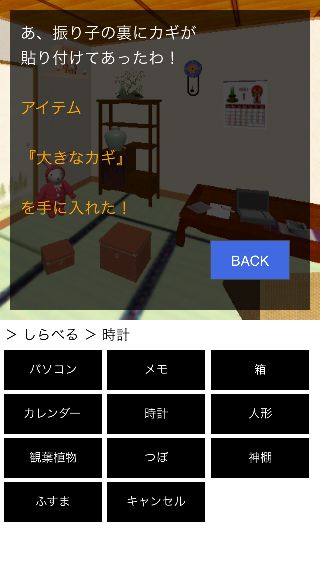 場所はプレイごとのランダムで、『メモ』、『時計』、『つぼ』などで見つかる。