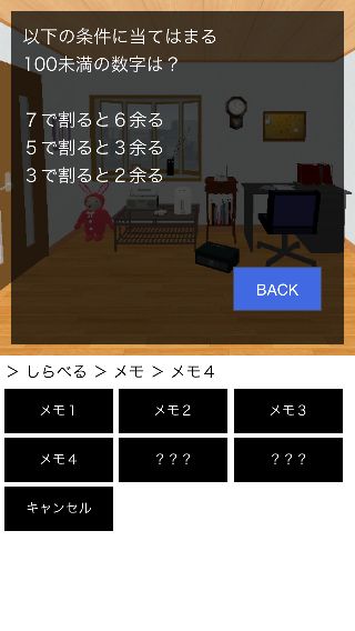 『しらべる』>『金庫』の順で選択して、「メモ4」で導き出した2桁の数字に合わせる。