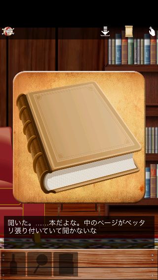 脱出!カリブのパイレーツ 無料 0 評価する 送信する 攻略その2 左に移動して、部屋の隅の床を開ける。 「鍵」を使って、「紋章」を入手。 右に3回移動して、地球儀を拡大。 地球儀に「紋章」をはめる。 「本」を入手して、「ブランデー」をかける。 「宝石」を入手して、左に2回移動。 壁の絵に「宝石」をはめる。 右に2回移動して、本棚を拡大。 側面の扉を開けて、レバーを操作する。 扉を開けて、脱出。 攻略その1 攻略その2