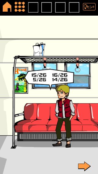 脱出ゲーム この電車開かねーってよ 無料 0 評価する 送信する あそびごころ。(ACTKEY CO., LTD.) STAGE 16 左に移動。 乗客をタップして暗号を確認。 右に移動。 暗号の『26』はアルファベットの総数で、左の数字は何番目かを表している。 扉の装置を拡大して、『OPEN』を入力する。 扉をタップする。 STAGE 1 STAGE 2 STAGE 3 STAGE 4 STAGE 5 STAGE 6 STAGE 7 STAGE 8 STAGE 9 STAGE 10 STAGE 11 STAGE 12 STAGE 13 STAGE 14 STAGE 15 STAGE 16 STAGE 17 STAGE 18 STAGE 19 STAGE 20 STAGE 21 STAGE 22 STAGE 23 STAGE 24 STAGE 25 STAGE 26 STAGE 27 STAGE 28 STAGE 29 STAGE 30 SECRET