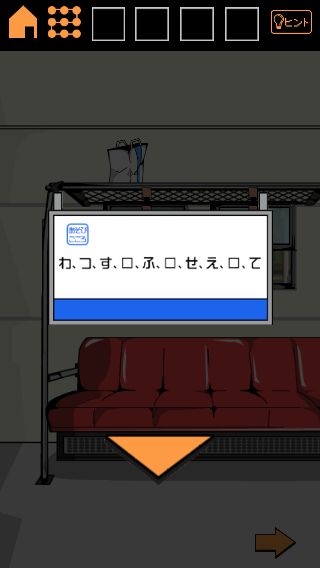 脱出ゲーム この電車開かねーってよ 無料 0 評価する 送信する あそびごころ。(ACTKEY CO., LTD.) STAGE 28 左に移動。 右の窓を開けて、暗号を確認。 数字を英語で発音した時の最初の文字になっているので、□の部分は『4、6、9』になる。 右に移動して、扉の装置を拡大。 『469』を入力して、扉をタップする。 STAGE 1 STAGE 2 STAGE 3 STAGE 4 STAGE 5 STAGE 6 STAGE 7 STAGE 8 STAGE 9 STAGE 10 STAGE 11 STAGE 12 STAGE 13 STAGE 14 STAGE 15 STAGE 16 STAGE 17 STAGE 18 STAGE 19 STAGE 20 STAGE 21 STAGE 22 STAGE 23 STAGE 24 STAGE 25 STAGE 26 STAGE 27 STAGE 28 STAGE 29 STAGE 30 SECRET