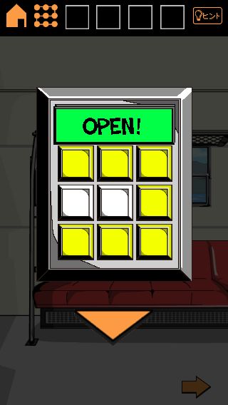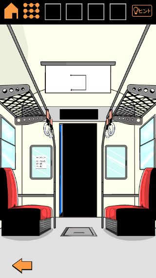 脱出ゲーム この電車開かねーってよ 無料 0 評価する 送信する あそびごころ。(ACTKEY CO., LTD.) STAGE 29 左の暗号を確認。 ひらがなを上の式に当てはめると『こうこくめくれ』となる。 上の広告をめくって、左に移動。 左の広告をめくると、装置が現れる。 最初の広告の矢印の順で押す。 右に移動して、扉をタップする。 STAGE 1 STAGE 2 STAGE 3 STAGE 4 STAGE 5 STAGE 6 STAGE 7 STAGE 8 STAGE 9 STAGE 10 STAGE 11 STAGE 12 STAGE 13 STAGE 14 STAGE 15 STAGE 16 STAGE 17 STAGE 18 STAGE 19 STAGE 20 STAGE 21 STAGE 22 STAGE 23 STAGE 24 STAGE 25 STAGE 26 STAGE 27 STAGE 28 STAGE 29 STAGE 30 SECRET