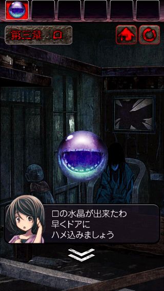 玄関に移動して、『喰』の穴に「口の水晶」をはめる。