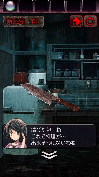 台所に移動して、棚の中から「錆びた包丁」を入手。