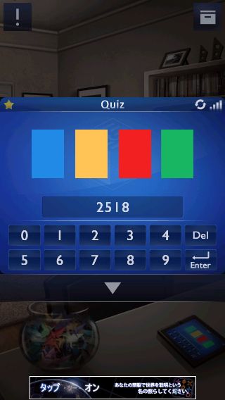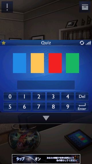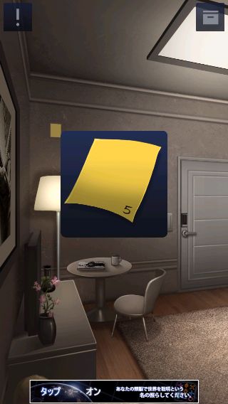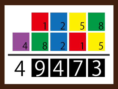 壁の絵に5枚の「紙」の数字を当てはめて計算する。