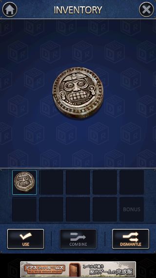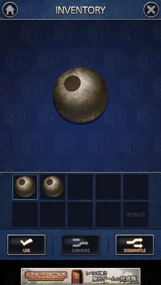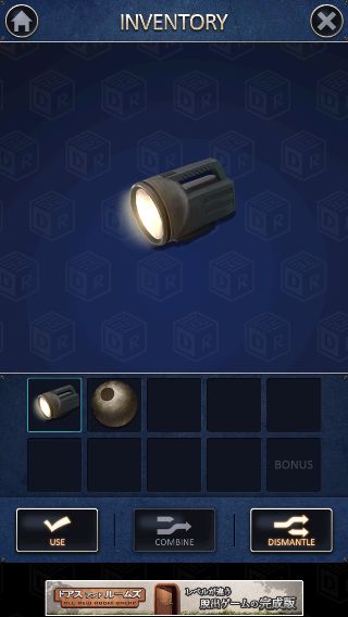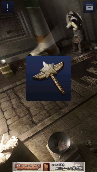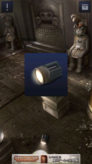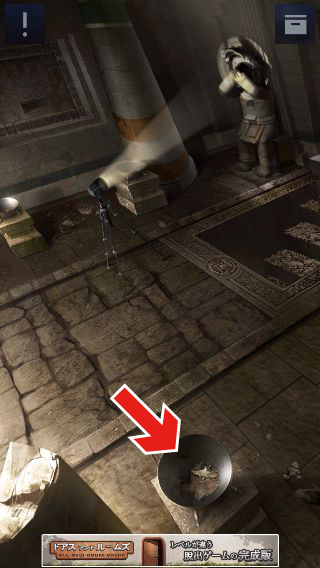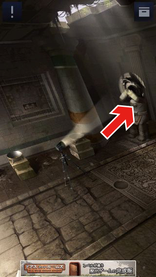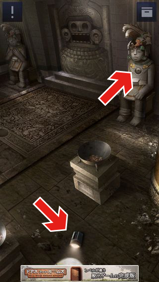 三脚に「懐中電灯」を置いて、右の像から「丸い石」を入手。
