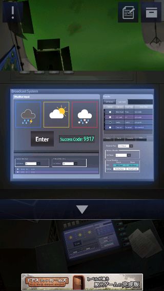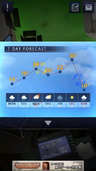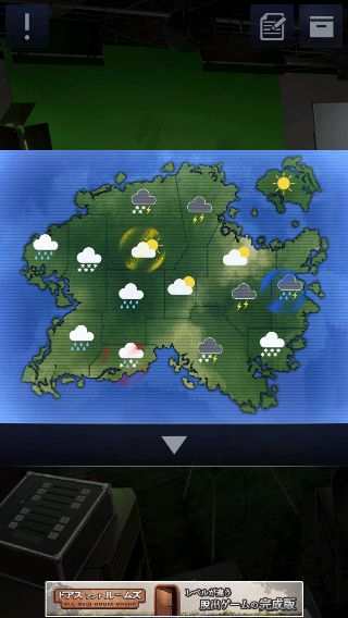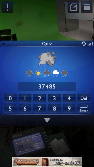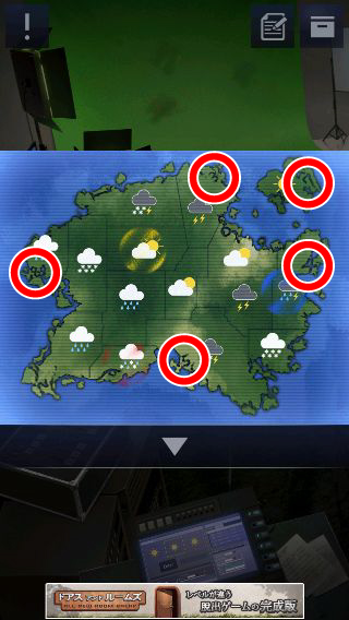 モニターの各地に天気で、図の場所の地形をよく見ると、数字が隠されている。