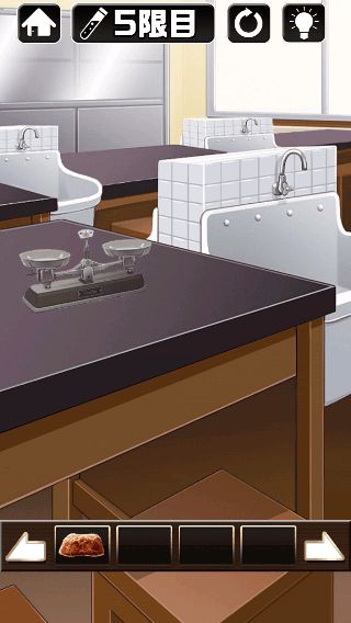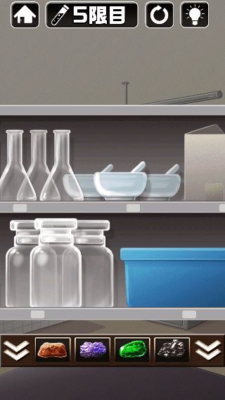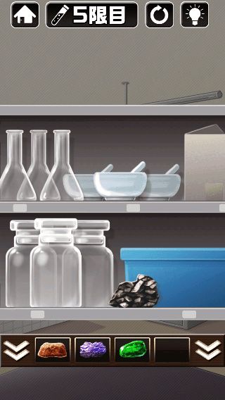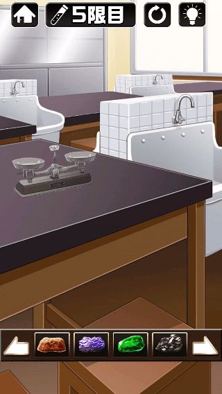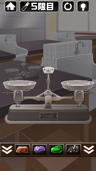 秤を拡大して、4つの「鉱石」の重さを調べる。