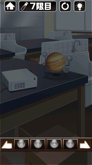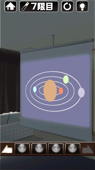 右に移動して、中央の惑星から近い順で衛星の色を確認する。