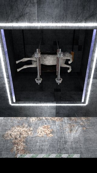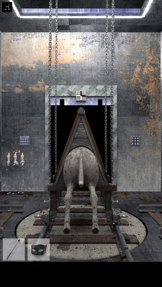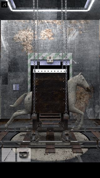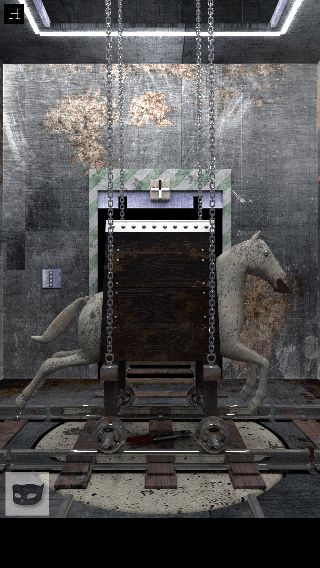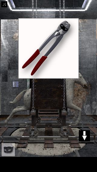 三角木馬の下から「工具」を入手して、木馬を固定しているチェーンを外す。