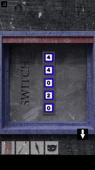 電気のスイッチを横に傾けると、『ON OFF → 44020』という数字に見えるようになる。