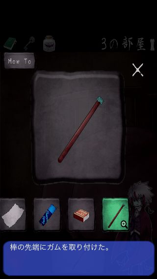 「棒」を入手して、「ガム」を付ける。