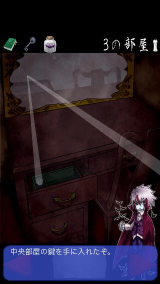 左に移動して、引き出しの中の箱から「中央部屋の鍵」を入手。