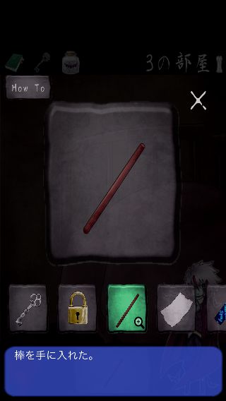 ベッドの下を覗いて、「棒」で「ゼンマイ」を入手。