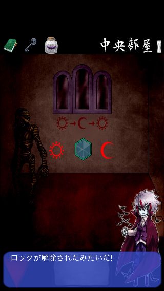「歯車」をはめて、左下の歯車に書かれている月のマークの数字を確認。