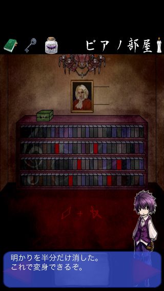 「吸血鬼化の薬」で人間に戻って、部屋に入る。