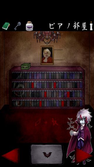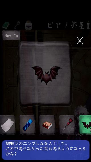ピアノの中から「蝙蝠型のエンブレム」を入手。