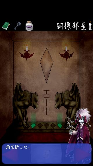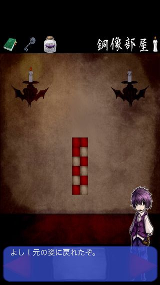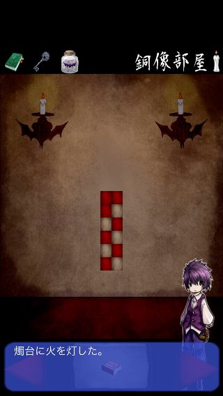 右上のロウソクに「マッチ」で火をつけて、反対側に移動。