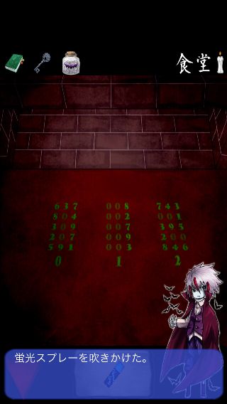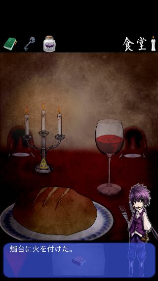 「マッチ」でロウソクに火をつけて、燭台に書かれている『黄色い三角形の7』を確認。