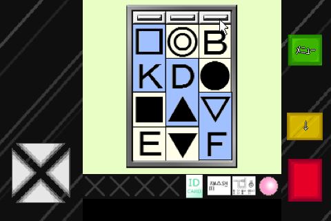 壁のパネルを暗号の通りに配置する。12個の記号を携帯電話のテンキーに当てはめ、『5=6』は『D=●』、『7=#』は『■=F』となる。