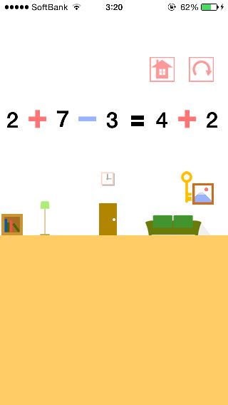 扉ノムコウ 無料 0 評価する 送信する Room No.11 数式が成り立つように、『+、-、+』に合わせる。 「カギ」を入手して、扉をタップする。 Room No.1 Room No.2 Room No.3 Room No.4 Room No.5 Room No.6 Room No.7 Room No.8 Room No.9 Room No.10 Room No.11 Room No.12 Room No.13 Room No.14 Room No.15 Room No.16