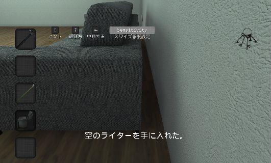 右側面から後ろを覗いて、「針金」を使って「空のライター」を入手。