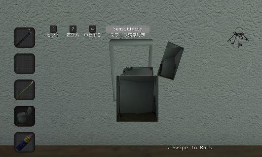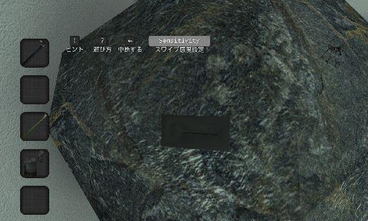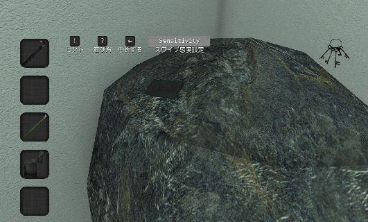 部屋の隅の岩を拡大。