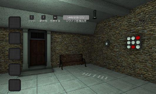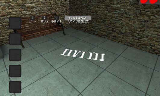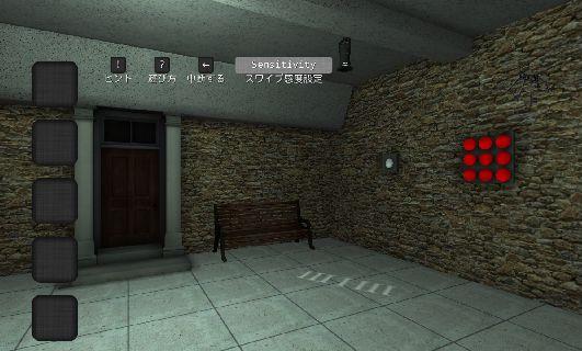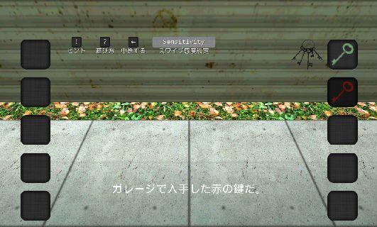 シャッターの下を覗いて、「赤の鍵」を入手。