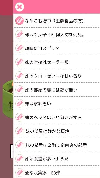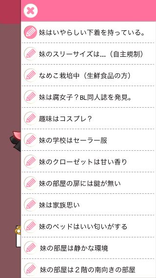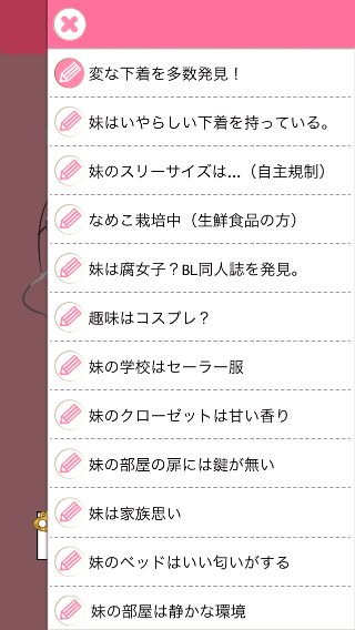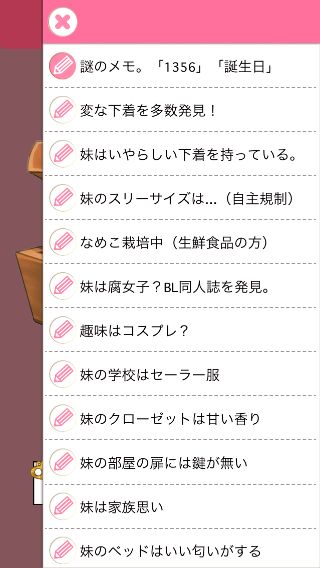さらに調べて、『妹はいやらしい下着を持っている。』を達成。