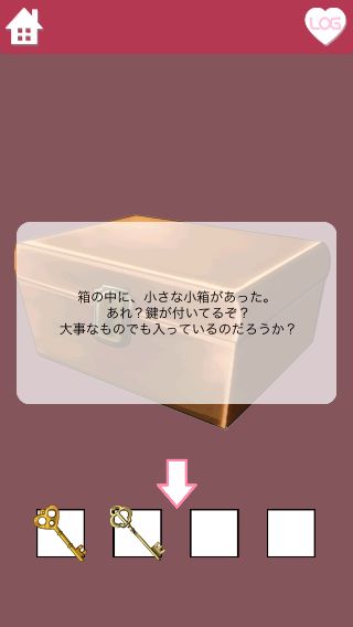 真ん中の箱を調べて、最初に入手した「カギ」を使う。