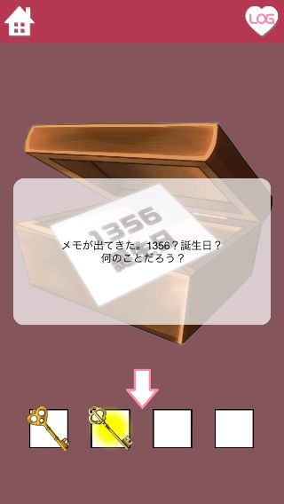 中のメモを確認して、『謎のメモ。「1356」「誕生日」』を達成。