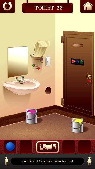 紫のペンキにつけて、「青い玉」にして壁の穴にはめる。