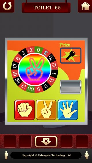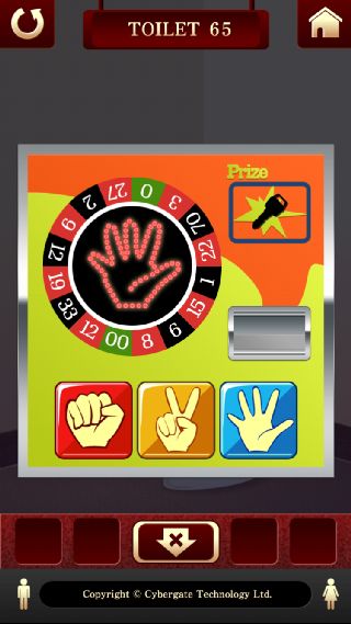 壁の装置を拡大して最初に『チョキ』を押すと、ルーレットの数字の『9』が光る。