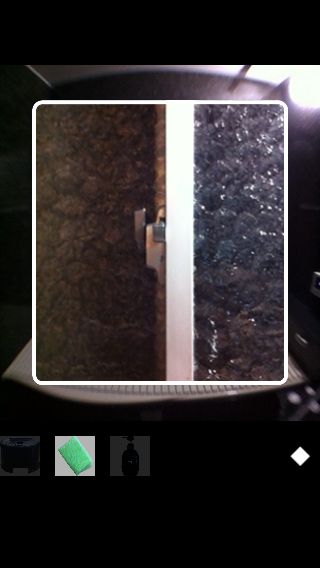 「雑巾」を使って洗剤を作り、左の壁の装置を拡大。