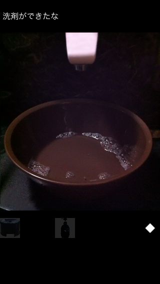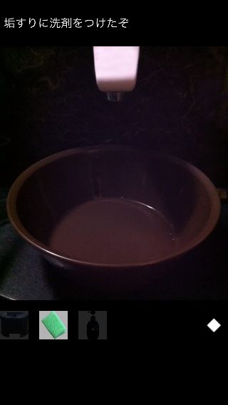 洗面器を拡大して、「垢すり」に洗剤をつける。