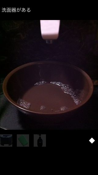 右の蛇口で水を出して、右にある洗面器を拡大。