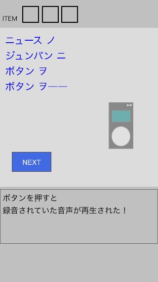 脱出博士 無料 0 評価する 送信する 攻略その2 ICレコーダーを調べる。 西表島、南瓜、東京、北、と方角を表すメッセージが流れるが、これはフェイク。 最後の『ニュースの順番に』に注目する。 『NEWS=北東西南』となる。 右に移動して、壁のボタンを押す。 右に移動して、壁のボタンを押す。 反対側に移動して、壁のボタンを押す。 左に移動して、壁のボタンを押す。 反対側に移動して、扉を開けて脱出。 攻略その1 攻略その2